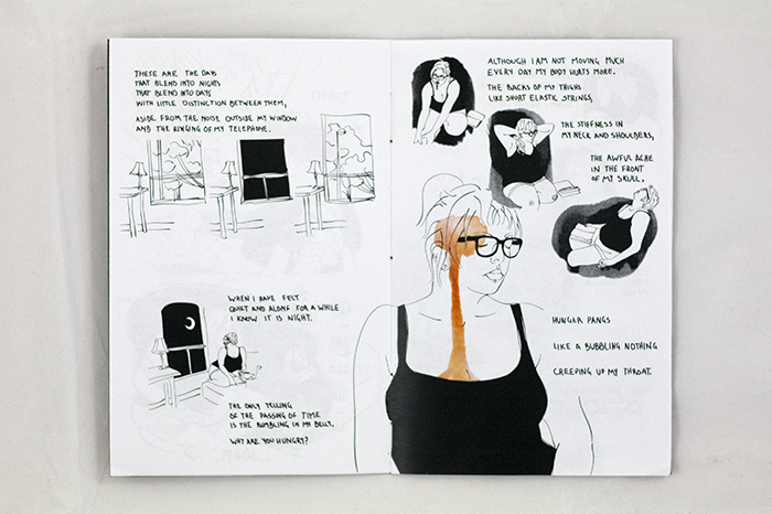 Black Ink & The Hunger is a 12 page graphic narrative about the all consuming nature of the creative process. Mediums include digital illustration, ink washes, and water colour.