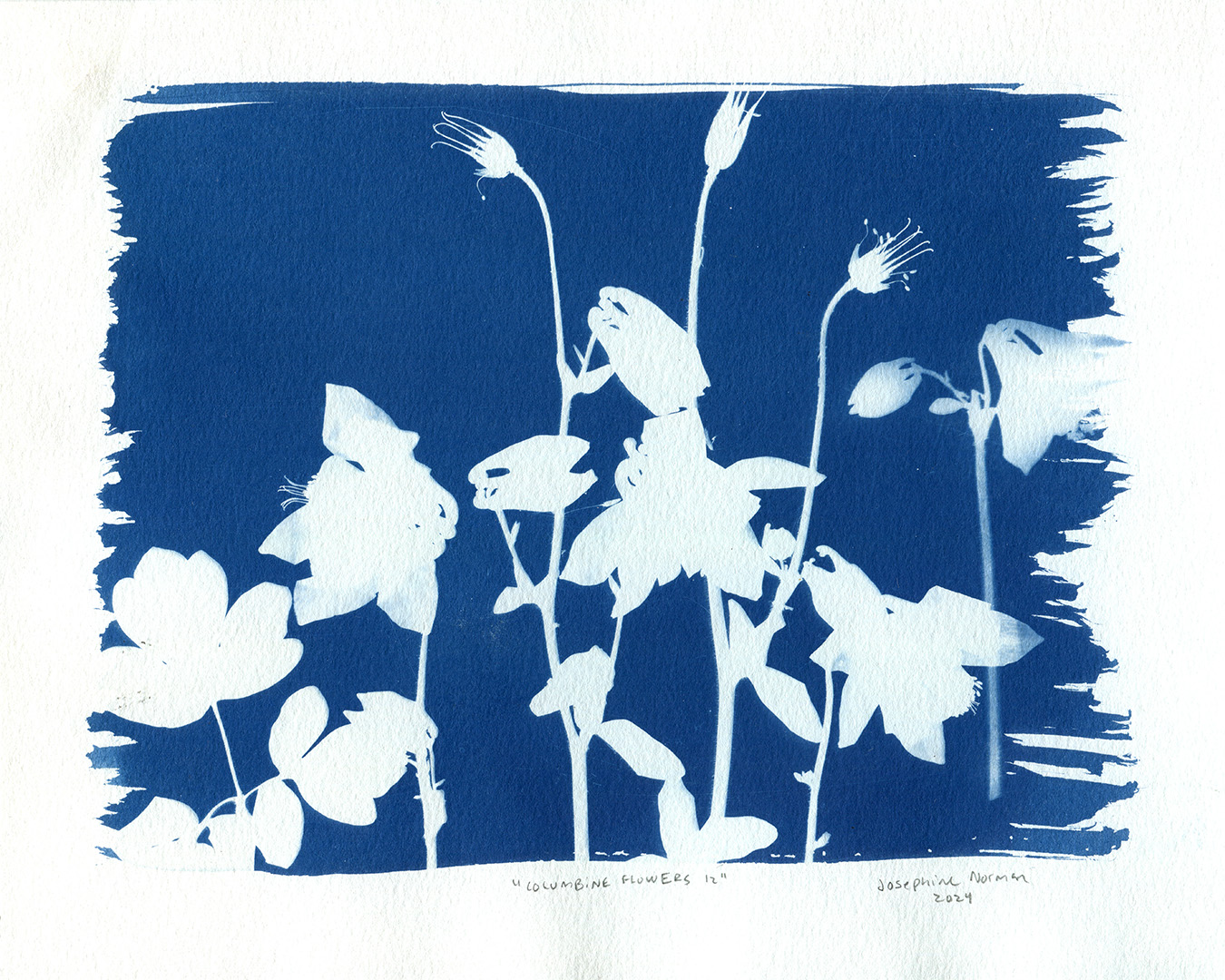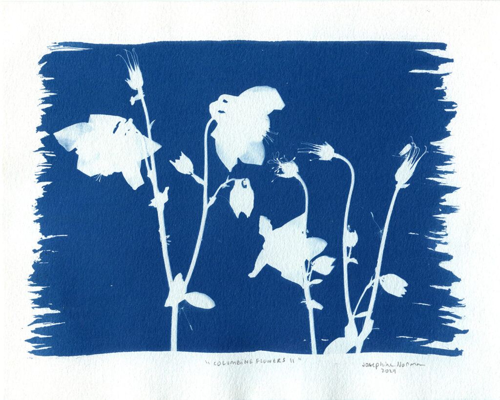Columbine Flowers #12, cyanotype, 20.32 cm x 25.4 cm (8 in x 10 in), 2024.