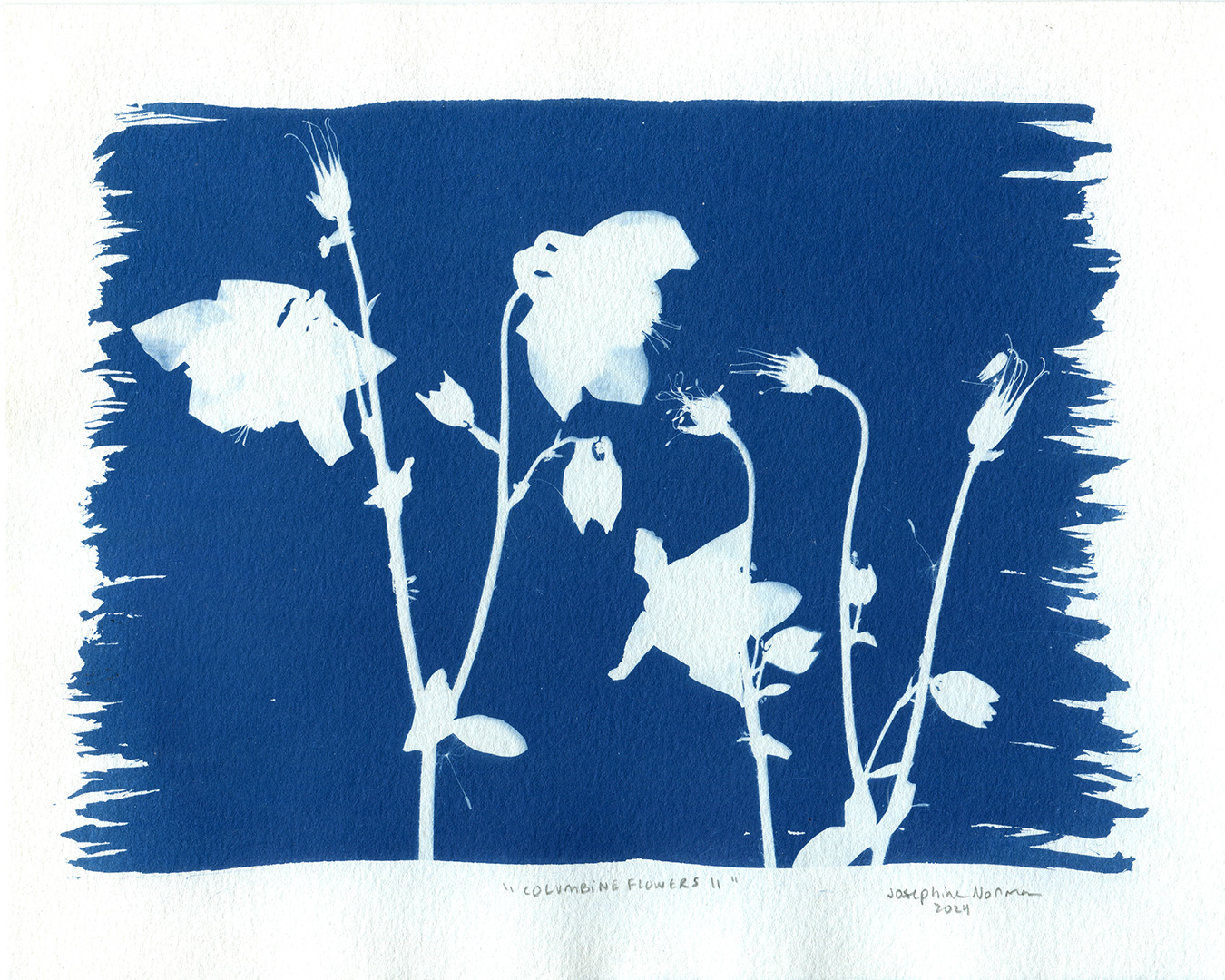 Columbine Flowers #11, cyanotype, 20.32 cm x 25.4 cm (8 in x 10 in), 2024.