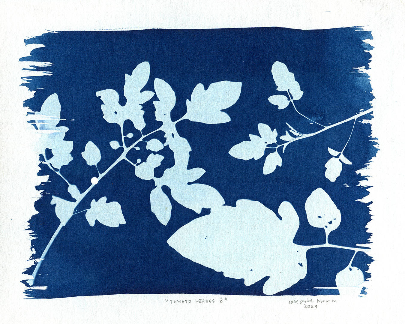 Tomato Leaves #8, cyanotype, 20.32 cm x 25.4 cm (8 in x 10 in), 2024.