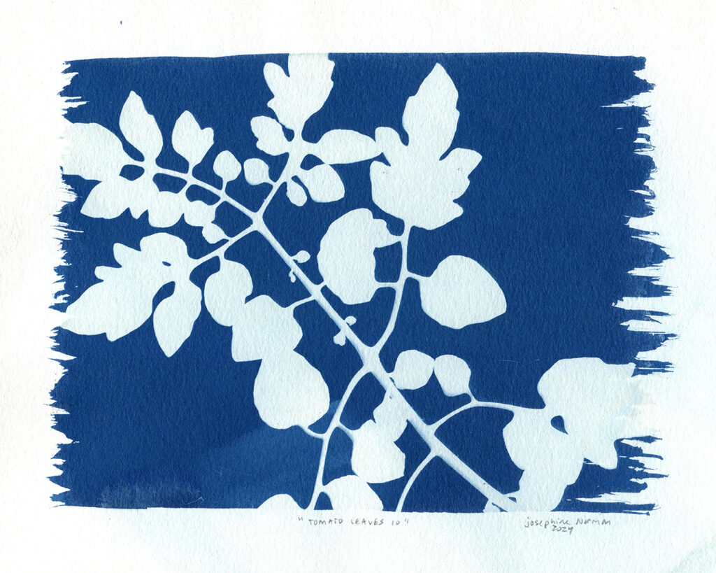 Tomato Leaves #10, cyanotype, 20.32 cm x 25.4 cm (8 in x 10 in), 2024.