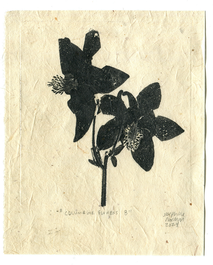 Columbine Flowers #3, monotype, 10.16 cm x 12.7 cm (5 in x 4 in), 2024.