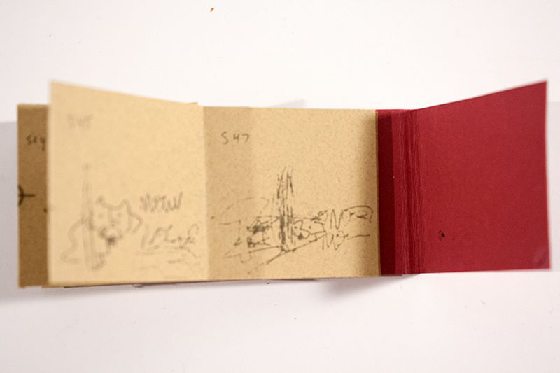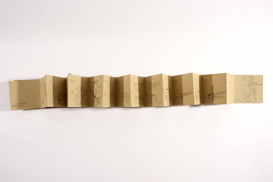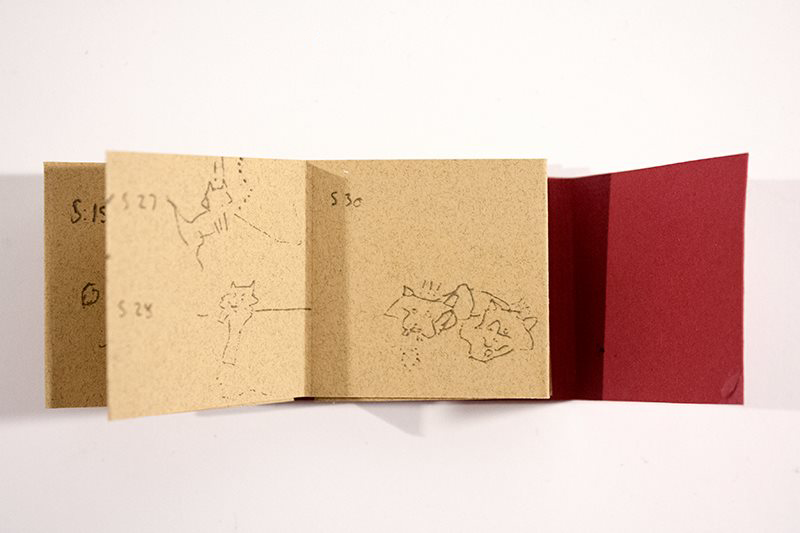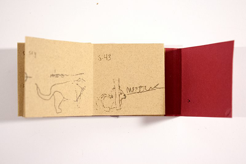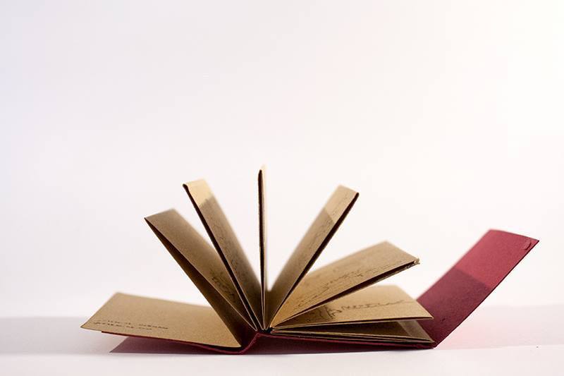 Two colour screenprint. 16 pages. Accordion fold. 2.5 cm x 2.5 cm (1″ x 1″).